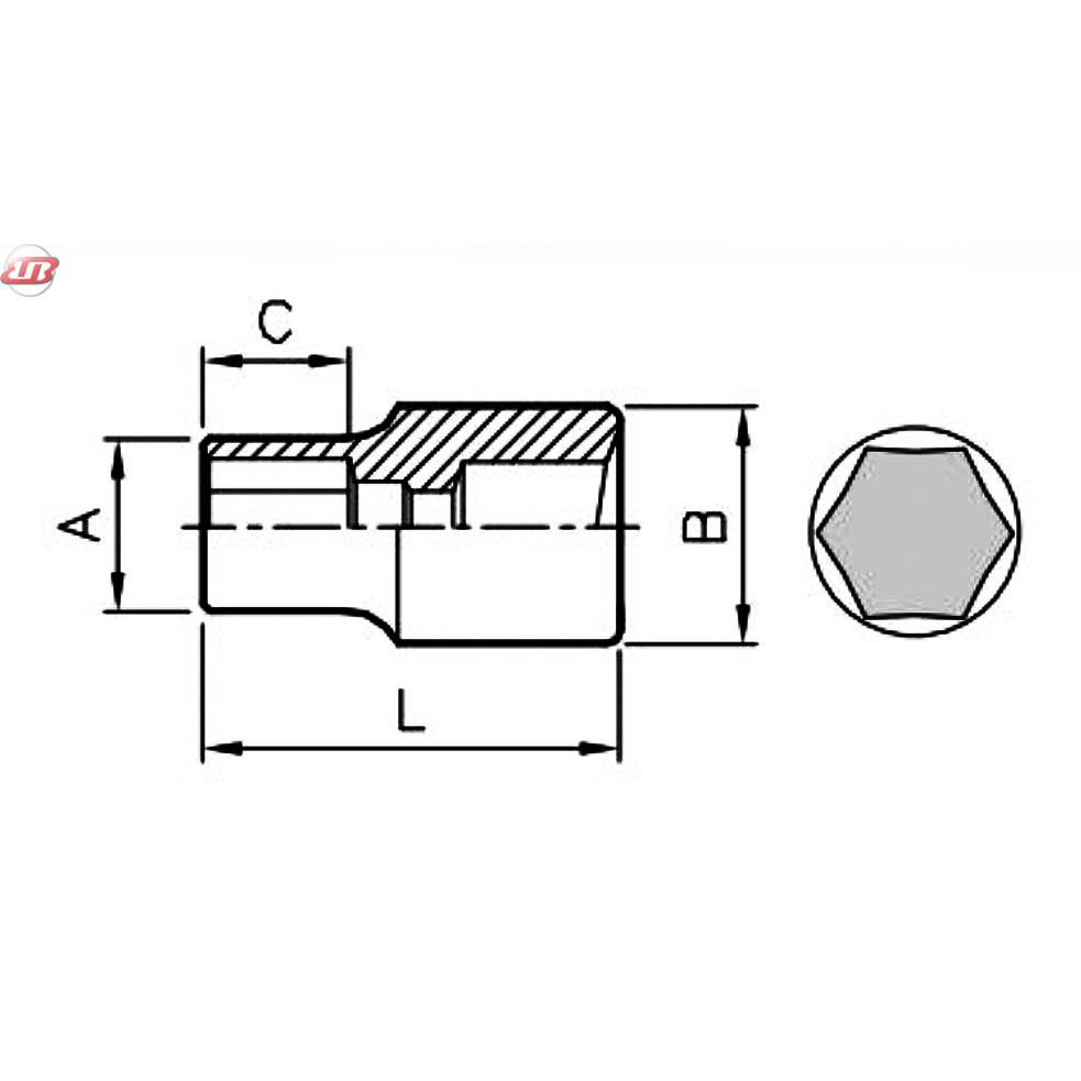 heie tubulara L=25,0mm, 1/4", 6 puncte, 8mm, A=12,0mm, B=12,0mm, C=10, CrV.